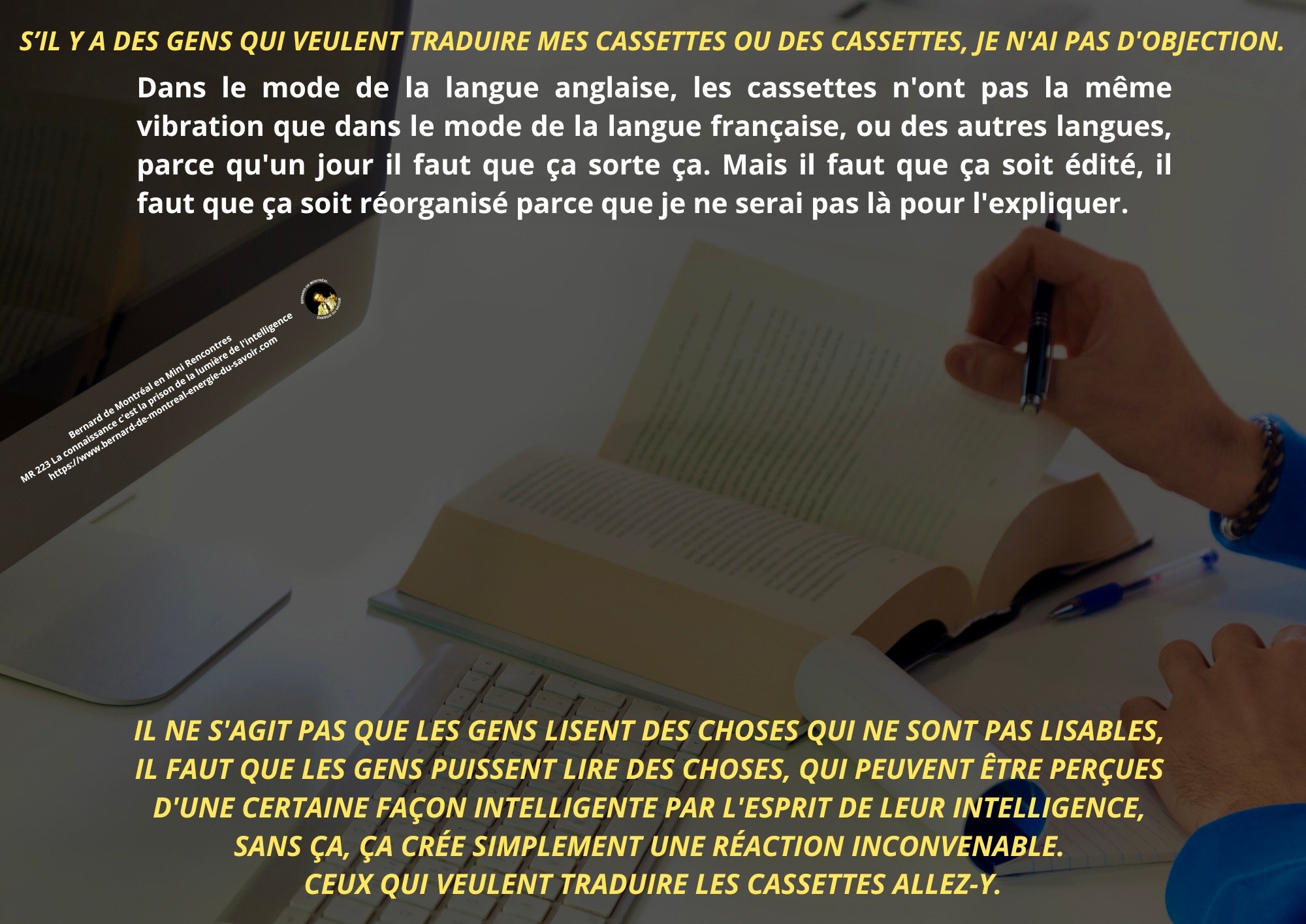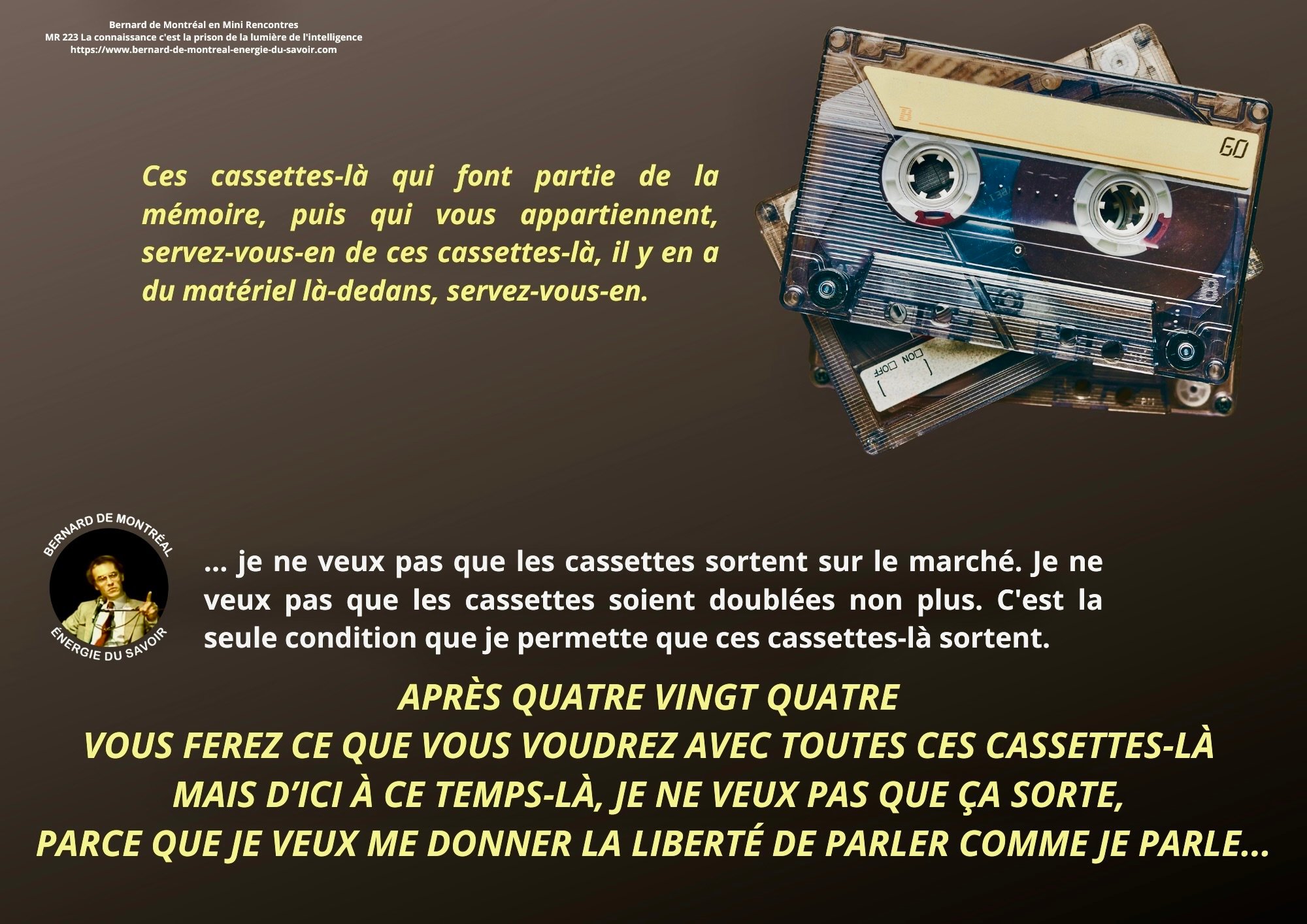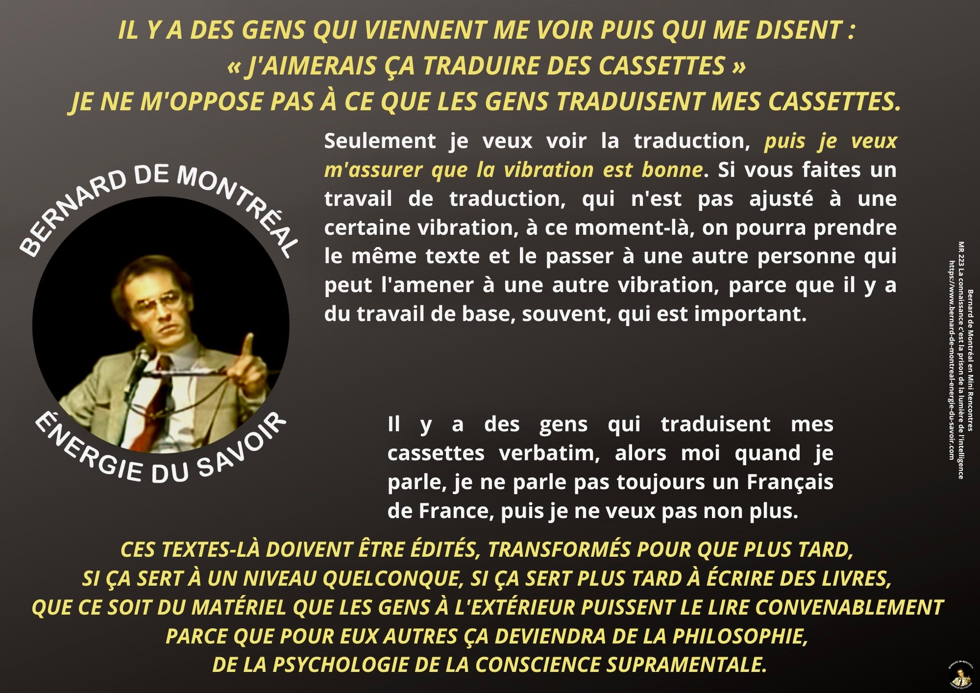 Aujourd’hui, grâce à la mise à disposition publique de tout le matériel audio, chacun peut vérifier par lui-même ce que l’initié fusionné, Bernard de Montréal, a réellement dit — ou n’a pas dit.